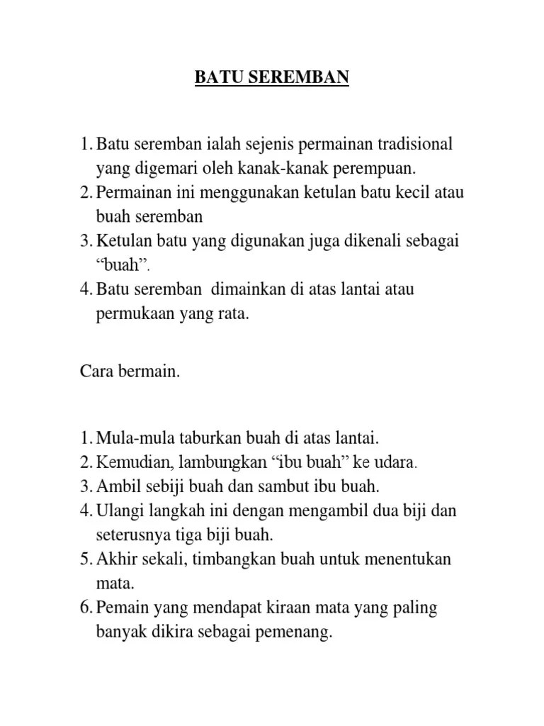 Batu seremban traditional game traditional gaming thomas the train engine pattern shopee . Cara membuat batu seremban gambar rajah berlabel. Permainan batu seremban mempunyai cara bermainnya yang tersendiri. Permainan ini kebiasaannya dimainkan menggunakan batu dan ia dikenali sebagai 'buah´.